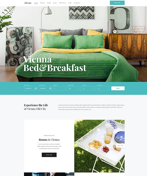 Attract the visitors' attention & allow them to book rooms quickly & intuitively using this beautiful homepage.